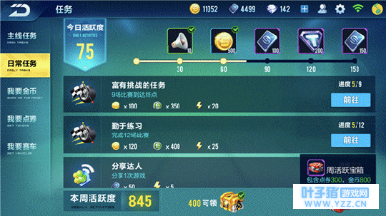 在飞车中,点券是一种用途广泛的货币。它可以在商城购买心仪的服装,以及在匹配赛中用处很大的赛车。如果是非常有耐心的车友,就可以攒很多点券来抽A车。今天就来教大家每天如何获取最多的点券。 日常任务 下表是本人总结的会奖励点券的日常任务: