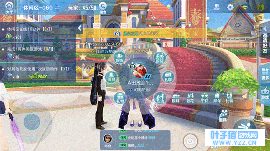 休闲区 休闲区里面有三个小任务,其中有两个小任务是可以获得点券的。 第一,对其他任意一名车友使用一次互动动作。在休闲区内随便点一个车友,会跳出一个菜单。菜单右下角有一个互动,点开互动选项,右面跳出来的5个互动小动作随便做一个就可以完成这个任务,可以说这10点券是白送的了。