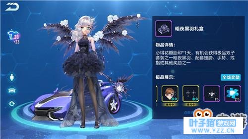 在商城中新增皇冠金灵礼盒和暗夜黑羽礼盒售价都是25钻石1个、245钻石10个、1150钻石50个。3月30日还会上架新的礼盒哦! 开启皇冠金灵礼盒必得花瓣胎印(1天),有机会获得极品皇冠专属金灵仙韵套装、配套背饰、手持、戒指或者其他奖励之一。 开启暗夜黑羽礼盒必得花瓣胎印(1天),有机会获得极品双子套装之一暗夜黑羽、配套翅膀、手持、戒指或者其他奖励之一。