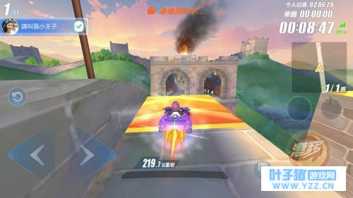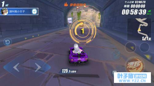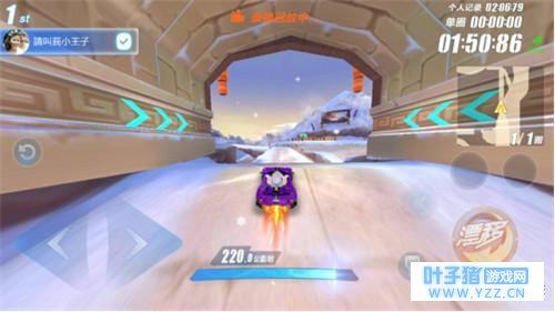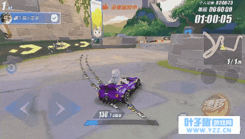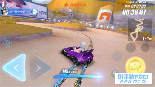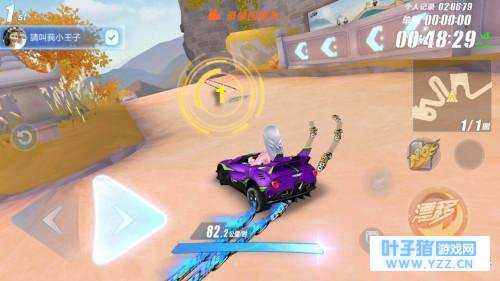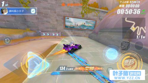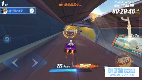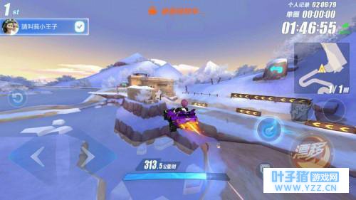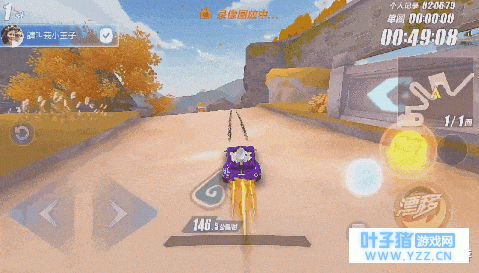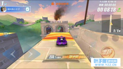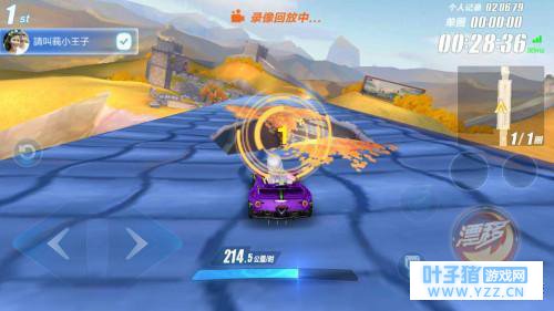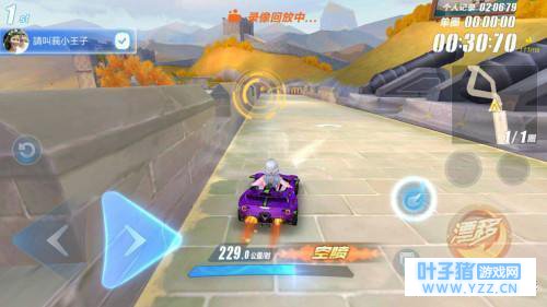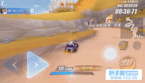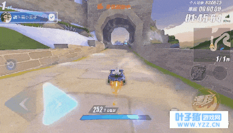 ▲ 左键调整好车身后开始漂移 赛车使用快速出弯技巧的同时,一边往右拉车头,一边利用小喷的前进力,让赛车脱离滑动状态。在车辆错开凸起的赛道时,立即使用氮气快速通过,后面的墙体近道正常过弯就行。过这个近道的重点就是断崖处提前漂移,让赛车横向飞出。 【五、飞跃近道】