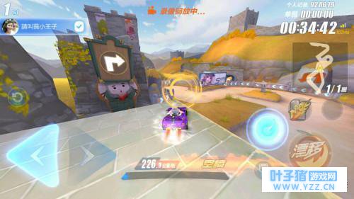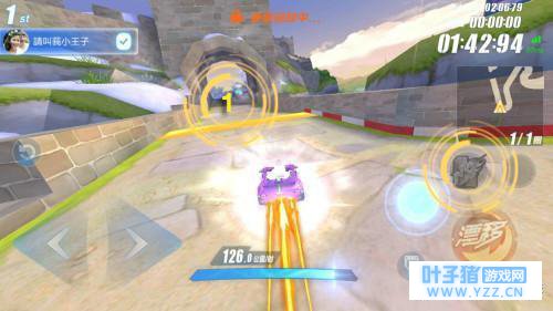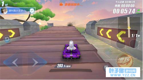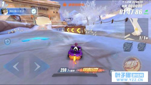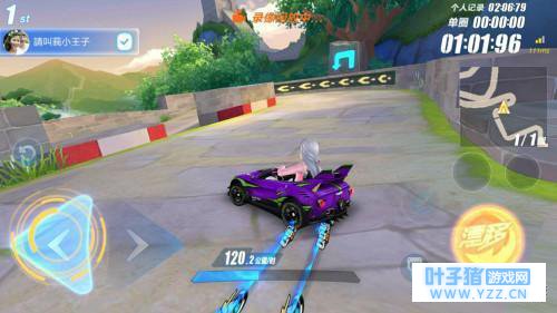 ▲ 轻点漂移键和左方向键 上图标注的那个弯道有一个小技巧,快入弯时,轻点漂移键和左方向键即可更快的通过弯道,弯道不大,长按方向和漂移键反而会延长跑图的时间。
