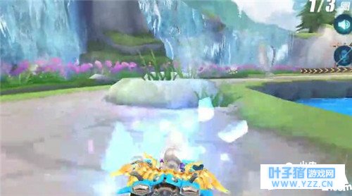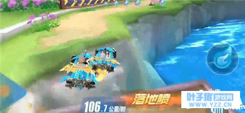 下面这个位置刚冲出瀑布的时候,记得把车子向左开,避免撞上石头失速。