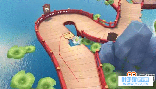 这里是个跷跷板是个很难掌控的近道,玩家们一不小心就会弹出去,在这里需要玩家们多多练习,否则就会掉进湖里,并且还不能通过这个近道。这就会导致落后很多。 近道难点3: