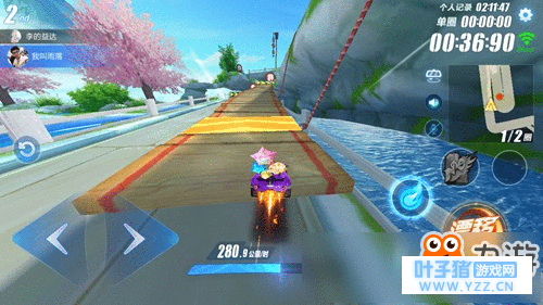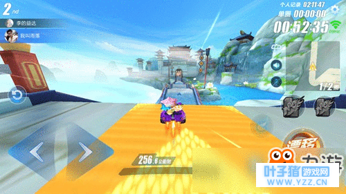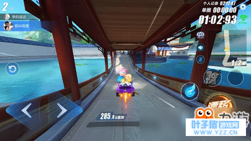 不过木栈道的宽度不足,在道路尽头向右转向需要提前变道漂移才行,否者撞上墙壁后速度会大减。。