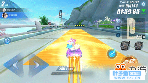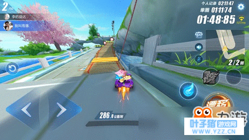 再宅通道要结束的时候,就可以向右转向漂移通过缺口弯道了,如果从冲过拱桥,到窄道直行,然后弯道超车能一气呵成,那么可以给我们提供很大的排名优势。