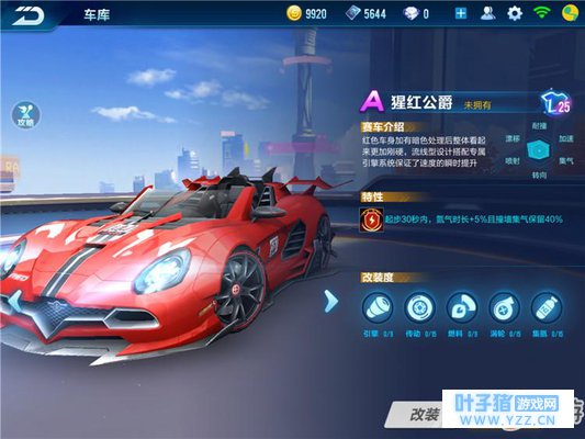 赛车简介 猩红公爵不仅外型十分时尚,猩红的颜色也让人一眼难忘,它的综合性能非常优秀,加上起步30秒内,氮气时长+5%且撞墙集气保留40%的特性,不仅让它拥有了更强的起步动力,还增强了它的稳定性,是一辆非常出色的A级赛车。