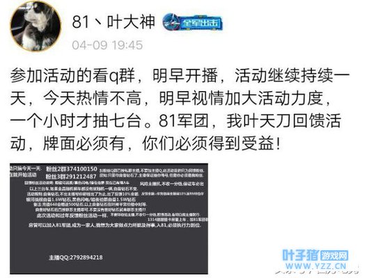 真的是给这位大神跪了!第一次见到这样不为利益回馈粉丝的主播,不说了不说了,小编也要去找叶大神抽车了!