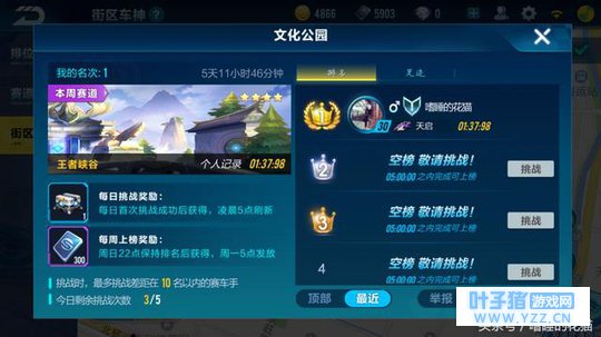 冰雪企鹅岛 NO.2 街区车神 街区车神,简单来说就是通过GPS来定位我们的所在地,然后和赛道之王是相同的。每天同样是五次挑战机会,爬的越高,奖励就越丰富。由于体验服人员较少,花猫以很菜的成绩也算爬上了第一名,实在侥幸。