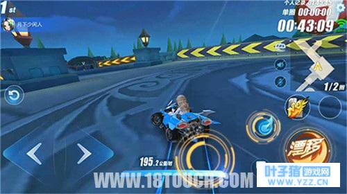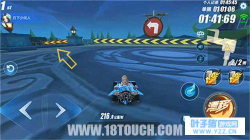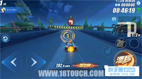 ▲ 先小漂后落地喷 而且落地后车身与直角弯道入口方向所呈的角度也很小,使用小漂就能轻松将车身摆正,朝向弯道方向继续行驶,可有效减少了漂移的失速,更快速从广场进入直角弯道。另外,建议大家在落地后先使用小漂,后释放落地喷,这样可以进一步减少漂移车速损失。