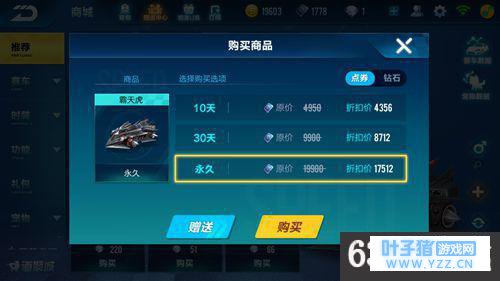 第二个方法就是在游戏商城购买,永久的霸天虎价格为19900点券,现在打折17512点券。霸天虎的价格还是蛮贵的,更曾经金刚狼的价格差不多了,可见这款车的性能很强悍了。