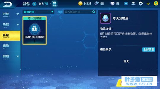 这个就是哮天犬的宠物蛋了,但是要在18号才能开启,也就是说,18号将正式上线哮天犬宠物,按照这个特性,估计是有一定的氪金成分在的!不仅如此,狱火啸天是狗年限定的神车,俗称狗车,哮天犬的上线很可能会把狗车给带返场,据小白扒到的消息,狗车返场是必然的,但是时间段被预估在七八月份左右,也有说是中秋,时间段不稳定,而这一次哮天犬的登场很有可能会带着狗车一起来,毕竟属性都是狗,有个名头在,天美才好返场啊!