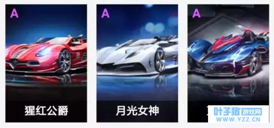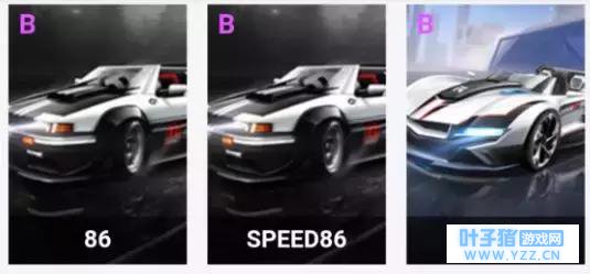 B车:剃刀、大黄蜂、天使之翼、卓越、NOBLE、K24、袭影、青色彗星、音速战神、金刚狼、大Q吧、暴风勇士、霸天虎、白灵、赤速战神、绿影战神、白鸽、紫爵、电竞之魂、蔚蓝之空、蓝魔鬼、极速之音、86、speed86、光芒