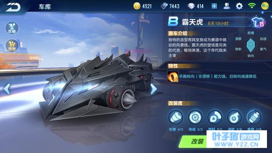 说这两个数据之前先介绍下赛车类型,现在的赛车可以分成三种类型,均衡车、漂移车、转向车!狗车狱火啸天毫无疑问的均衡车,均衡车没有短板也没有长处,所有地图都通吃,竞速和道具上的万金油,但是狗车的数据在均衡车中,六维图面积是最大的,而且出色的喷射能力使狗车在使用氮气的过程中是最出色的!说一下平均的车,伯爵以及璀璨,都是目前竞速上的主流A车,而B车则是蔚蓝之空为代表,优秀的均衡属性被作为飞车官方赛事的指定用车!