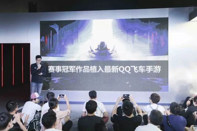 腾讯互动娱乐市场部总监刘星伦作为代表进行发言,宣布本届赛事冠军作品将会被植入最新版《 QQ飞车手游 》当中。这一消息的公布,当即引发了现场大学生们的热烈掌声和欢呼。