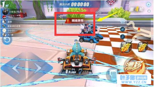 他面朝的是与对手相反的方向,并且已经是集满了两波氮气准备加速的,结果出现了网络异常的现象,到处乱飘、乱撞,而其他人估计也是一样都是在原地不动。这种BUG现象小编还是头一次见到,他说居然退房间也不行,这就比较尴尬了,只能退出游戏重新来过一次!啊,天美的漏洞太坑了。