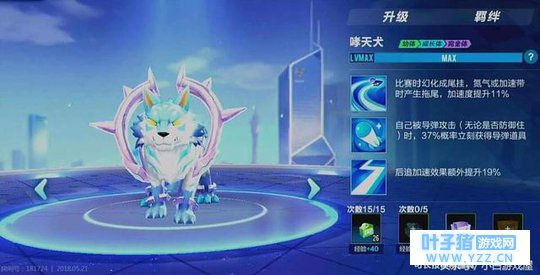 现在就开始重点说一下竞速方面的,首先是大家很期待的哮天犬特性,特性是后追加速,跟点券A车光电游侠一样的特性,但是增加的比例不一样哈!这个特性在多人竞速方面是很实用的,实力相差不大可以做到保前三,所以竞速上还是一个很不错的特性了!哮天犬之所以可以作为全服车神排行的奖励,不是因为这个后追效果有多强,而是第二个技能在道具上的变态,所以哮天犬不仅是竞速上不错的宠物,道具上更是目前第一的存在!比起目前所有的宠物都更加的万金油!目前没有哮天犬的也不必担心,商城迟早会上架的!
