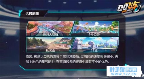 赛车属性 极速大Q吧的漂移能力出类拔萃,集气性能也相当优秀,堪称B车中的弯道统治者!