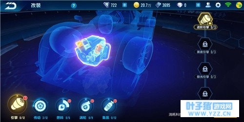 【改装目标】 由于飞跃的特性为增加集气,所以车手们可优先选择改装燃料和集氮系统,增加赛车集气和氮气喷射时间,改完燃料和集氮就可以考虑对引擎进行改装,提高赛车的平跑速度,让前期优势更大。最后再改装传动和涡轮系统,提高基础动力和小喷动力。飞跃的各项改装系统里分支只有传动系统有,车手们可以根据自身情况去进行改造,如果科技点够多一次性点满是最好的。