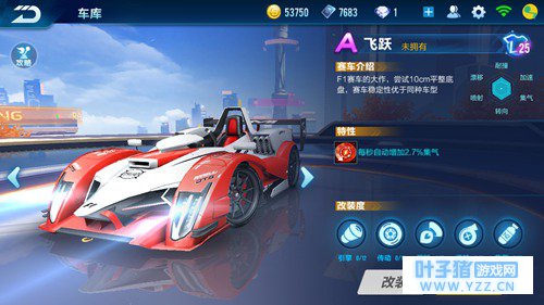 QQ飞车手游飞跃怎么样,A级车飞跃性能优势有哪些。QQ飞车手游更新后,开放了一辆全新的A级车飞跃,它也是目前QQ飞车手游唯一以F1赛车造型研制的超级跑车,那么QQ飞车手游飞跃有什么优势呢,下面雨落就为大家带来A级车飞跃的详细性能分析。 F1赛车大作飞跃,尝试10cm平整底盘,稳定性远高于同种车型,以帅气经典的赛车样行,博得了很多车手的芳心。