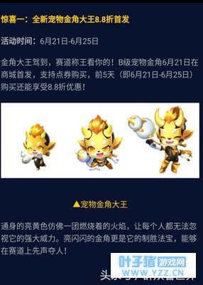 6.21日商城会限时折扣售卖金角大王,大家有闲置点券这次可以去来一发了。