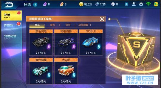 【获取途径】 在商城购买金晶胎印宝箱,有一定概率得到永久的暗夜伯爵。暗夜伯爵由于是极品A车,概率偏低,建议大家准备足够钻石多抽几次。