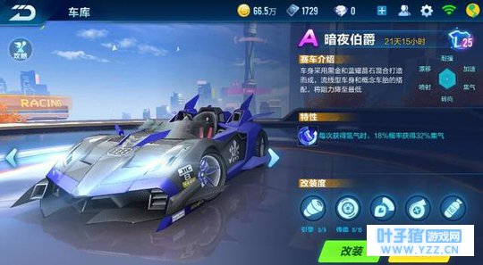 暗夜伯爵是《QQ飞车手游》中的一辆强力A车,拥有十分独特的外观及集氮漂移能力。这辆A车的性能怎么样,拥有什么样的优点呢?感兴趣的小伙伴可以一起来看看。 【赛车外观】 暗夜伯爵车身采用黑金和蓝耀晶石混合打造而成,流线型车身和概念车胎的搭配,将阻力降到最低。黑色车身、蓝色尾部,在暗夜伯爵的身上,大家隐约可以看到璀璨和黑夜传说的影子。第一眼看到暗夜伯爵会觉得黑蓝搭配有点突兀,但玩上一段时间后,会发现暗夜伯爵这样的设定还是蛮特别的。