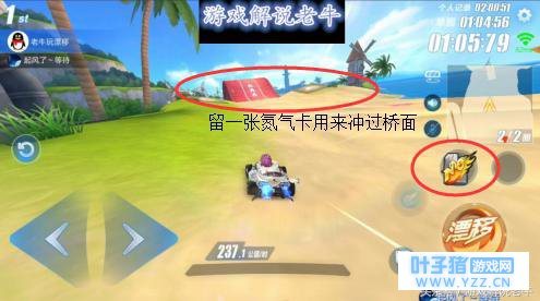 在第一圈结束时,尽量保留一张氮气卡来确保有足够的动力飞过河流。