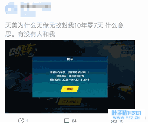 手游QQ飞车: 玩家充值两万软妹币后被无辜封号, 网友痛诉被封10年