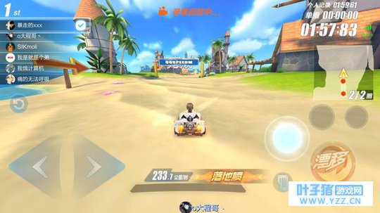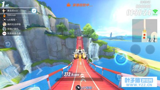 具体实例剖析K24 为了让大家更直观的了解K24各方面能力,我们用K24对捷径、转弯、爬坡、飞跃等能力都有一定要求的【反向彩虹风车岛】地图进行实测,具体剖析下。 起步与集气:以K24如此轻的车身,在起步时非常容易被挤开,基本没有办法抢到好的车位,容易在开局落入劣势。以数据来看,K24拥有最小的入弯半径,理应成为过弯速度最快的车,但在实战中,由于K24的集气能力有限,必须延长漂移时间来保证集满一管氮气。