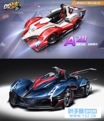 (加入本次常规赛的全新A车:飞跃(上)和蓝影主宰(下)) 为了迎接S联赛常规赛揭开帷幕,开战首日上海便化身成最大赛车场,《QQ飞车手游》元素入侵上海12个知名地标,如黑白格起跑线、游戏赛道标志、赛车等元素。
