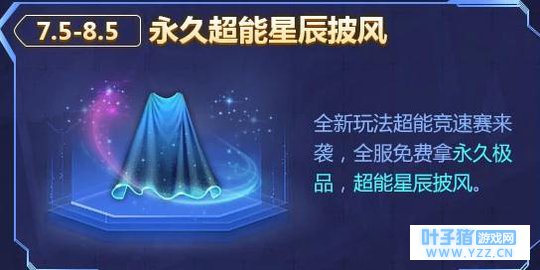 7.5到8.5玩新模式超能竞速模式就可以获得永久的披风。