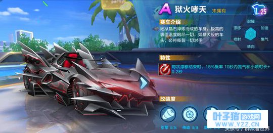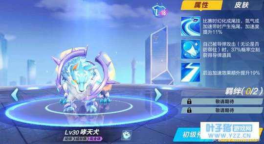 除了外观上的加分,再有就是强大的宠物技能了。一技能提升最高加速度11%,比其它宠物都要强。二技能是在道具赛中发动,受到导弹攻击时概率获得一个导弹道具。第三个技能是所有赛车都想要附加的一个技能:后追加速最高可达19%。a车光电游侠的后缀加速为30%,这个技能看似吸引人,可不要错估了其效果,因为后追加速是:所有车落后第一名时都会有加速效果,而a车光电游侠和宠物哮天犬只是额外提升这个后追加速的效果,这样看起来,各位玩家就平衡很多了吧!