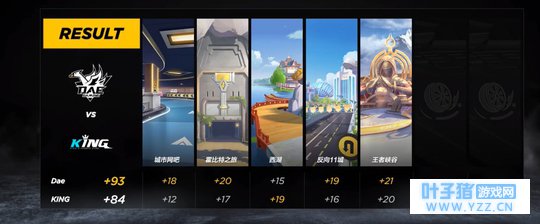 但第六局的时候出现了变化,King战队的金牌车手禅师开始发力,以惊为天人的神秀操作将比分拉成104:104的平局状态。而最后一局Dae也没能守住分数,以2分的微弱之差遗憾擦肩开局不错的首轮比赛。 不过值得一提的是,鹏弟在11城的地图成功打破了对手禅师创造的记录,首轮也算是虽败犹荣了。