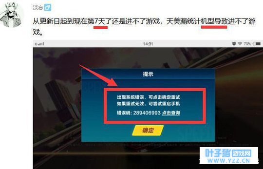 来看看他们到底是什么原因吧!其实这位玩家是因为更新之后进入不了游戏了,很奇怪的现象是无论是重起游戏还是重起手机之后都无法正常的进入游戏里面去了而且这位玩家是连续7天都进入不了飞车手游!