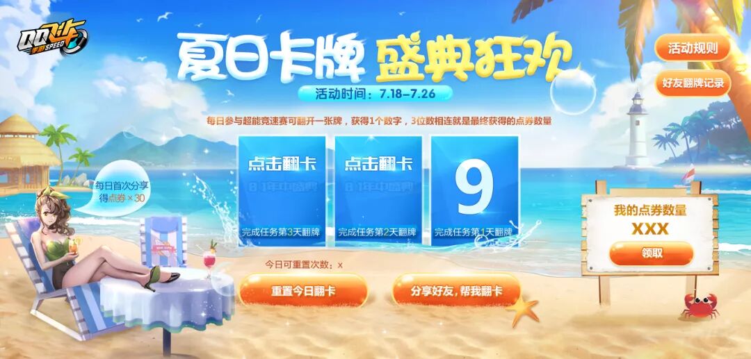 除了头像框外, 7月18日-7月26日 期间,赛道工还为车手们准备了“翻开有礼” 夏日卡牌活动 (•‾︶‾•)~