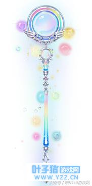 ▲ 泡沫之夏手杖 五彩缤纷的泡沫营造出梦幻的感觉,正中央的水晶球不断变幻出瑰丽的色彩,泡沫之夏手杖拥有强大的魔力,当你手持它的时候,就能够从水晶球中看见自己的爱情,同样它可以将祝福加持给每个人,引领你走向命中注定的爱人。