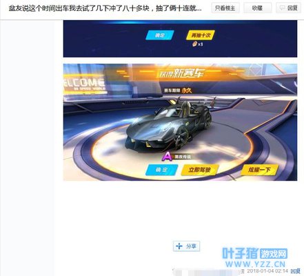 最近,璀璨礼盒下架之后,众网友纷纷转向金晶十连抽!只为拥有一部黑夜传说这一部永久A车!但是许多土豪都已经砸了五千以上了,始终不见A车的影子!让不少土豪寒了心!但是却有例外,有玩家不到一百就抽出了A车,称这是朋友告诉他的,晚上这个点抽奖爆率大增!