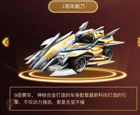 在来就是一周年剃刀了,上线即可免费领取,作为一周年的纪念赛车,肯定是不会太弱了。看来剃刀要重回B车霸主了。