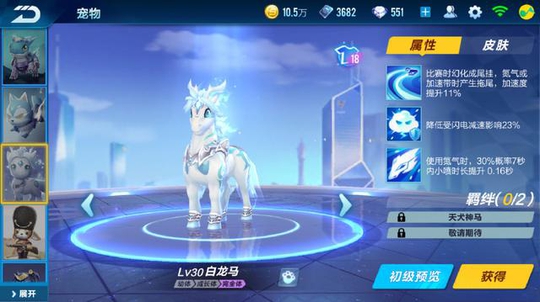 第二个小宠就是白龙马了,白龙马的特性使用氮气时,30%概率7秒内小喷时长提高0.16秒,这个是目前最为强力的宠物了,哮天犬都有些比不上,但作为目前最强的宠物,价格自然是会略微高一点的,大概需要200RMB左右才行,不过总体来说还是非常值得的,毕竟这个宠物的属性就摆在那边,还是一个非常强力的宠物。那么白龙马推荐搭配的赛车大家应该都知道了吧,那就是白玉神驹了。