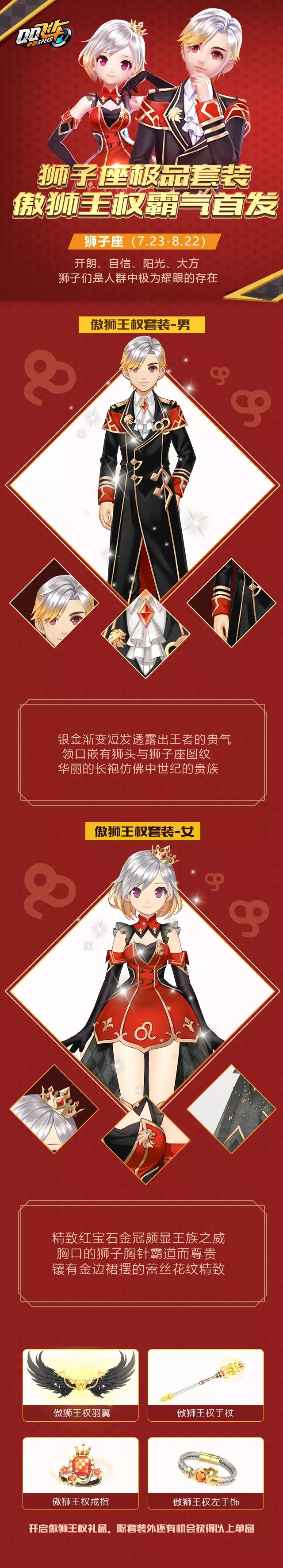 霸气、开朗、阳光的 狮子座 如果来到飞车世界又会是怎样的模样呢? 7月23日首发 的 傲狮王权礼盒 将会给你答案! ▲ 傲狮王权礼盒