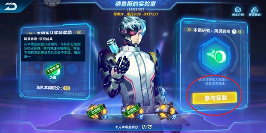 这个比较容易理解,就是天启的转向+天启的转向不减速特性合在了一起。 这个也是每个车队都一样的。不用担心我是自动集气,别人是平开220这样的情况。 当然,第三周的时候,你第一周获得的特性就失效了,只能获得第三周研究的特性和第二周特性的削弱版。 四. 车队实验室好不好玩,怎么玩 先看下积分情况