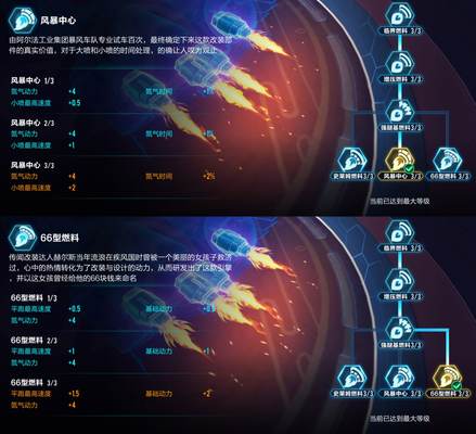 骑士精神的改装分支同魔王一样,引擎两个分支,燃料三个分支。这套分支改装方案很确定:纯竞速右左,纯道具右右,二者兼得右中。 团子测试了两种改装的性能数据,如下