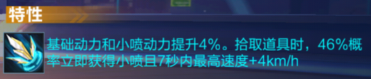 一般来说,看车都是先看性能再看特性的,不过骑士精神有点特殊,其特性后半段是专门针对道具赛的:拾取道具时,46%的概率立刻获得小喷且7秒内最高速+4km/h. 再考虑前半段特性提高基础动力和小喷动力,可以预见其道具一定不弱!那么,其竞速水平是否很弱呢? 三. 性能