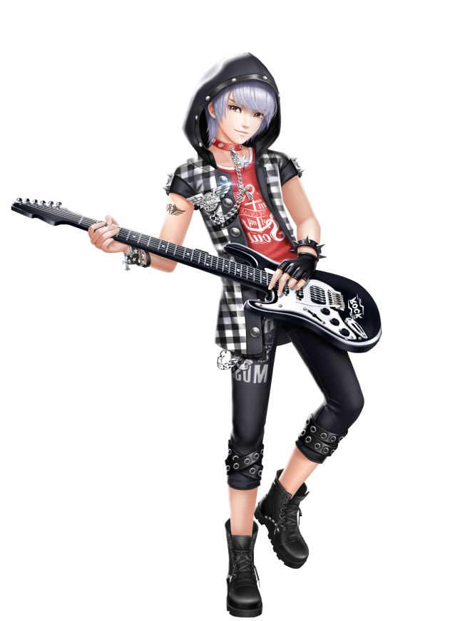 辣么问题来了,请问手上的 玫瑰花 是送给星瞳的嘛? 黑红配色可是星瞳非常喜欢的搭配呢~时髦的黑+红,可是 街头潮人们永不过时 的搭配选择哦! 这一身的搭配可以说是花了心思的哦,红色的内搭加上黑白格纹外套,经典而又时尚~手中的电吉他也让整套时装瞬间变得独特起来,加分不少呢~不知道dancer们注意到了吗?脖子上的 铆钉choker 和 衣服上的装饰链 是有串联起来的“小心机”搭配哦!