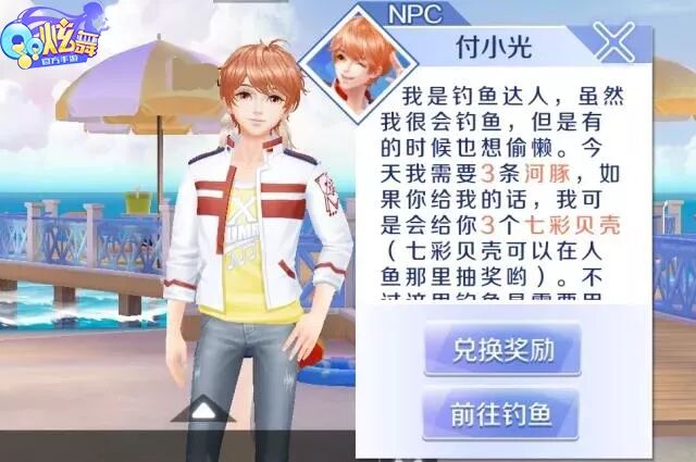 对啦,在人鱼小姐姐脚下的贝壳都是宝物,每天可以捡取十次哦~ 帅气“钓鱼”小哥 来到大海边,一定不能错过钓鱼啦!走到 付小光 哥哥面前,他会告诉小主人们每天的 钓鱼任务 哦~还能用钓到的鱼跟他兑换 七彩贝壳 呢! 小主人们每日 完成活跃度任务 ,就能领取鱼饵, 点击右 下角的 钓鱼按钮 ,就可以钓鱼啦~海里可是有多种多样的鱼类等待着小主人们带回家!