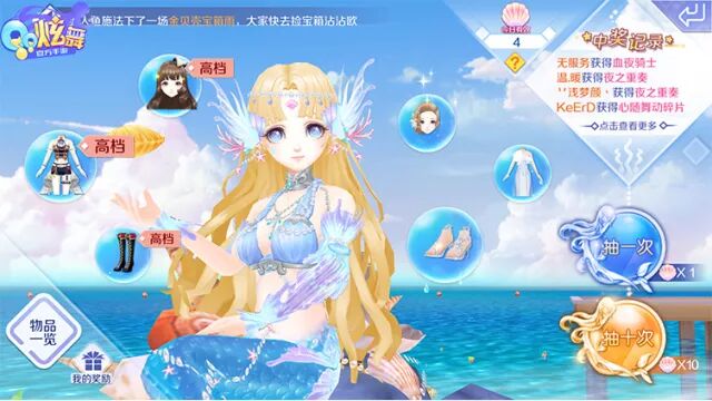 美丽人鱼“祈愿” 66最喜欢的就是人鱼小姐姐菲欧娜啦,看着她就仿佛来到了童话王国! 在人鱼姐姐这里,可以用 七彩贝壳抽奖 哦~奖品不仅能获得染料等物品,更有好看的 高级时装 ! << 滑动查看下一张图片 >>