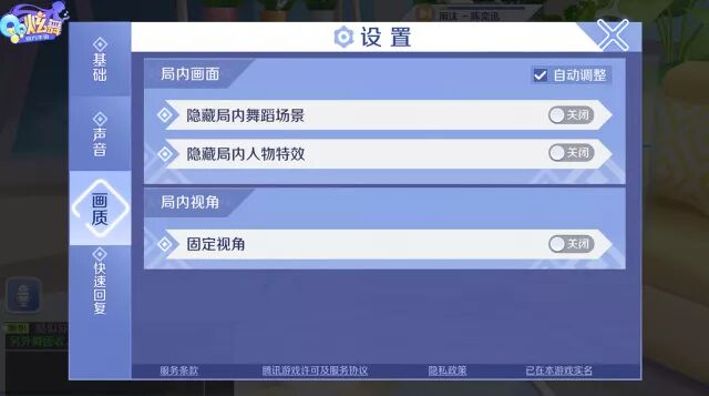当然觉得画面特效太炫的,也可以在阳台的66那里 关闭特效 ,选择隐藏局内舞蹈、人物特效和固定视角就好啦~