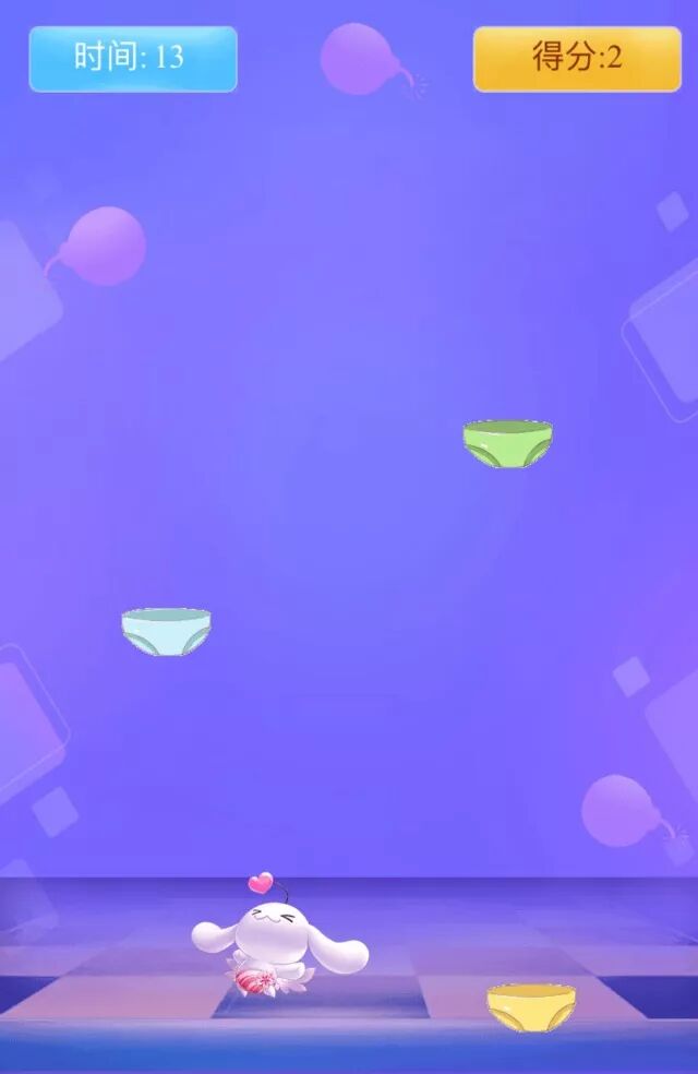 点击下图开启裤衩大作战! 活动时间 3月30日-4月1日 游戏规则 点击游戏开始后,小主人们要做的就是帮66 接到各色小裤衩 ~! 不过要注意的是,除了小裤衩以外~接到便便扣分,接到导弹游戏就结束啦! 每次游戏将会 消耗2积分 ,积分不够的小主人可以去菜单栏【 舞者福利 】-【 积分任务 】做任务领取哦~ 游戏奖励 对于热心的小主人们,66当然要给你们送福利啦~游戏结束后有几率获得 金币 和 材料礼盒 哦!