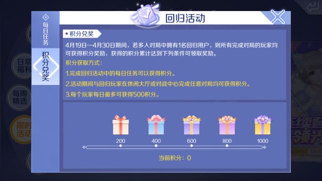伴随着许嵩哥哥好听的歌声,炫舞中还迎来了不少新活动哦~ 首先66要告诉大家一个好消息!不知道小主人们发现了吗? 伟霆哥哥 悄悄回来啦~惊不惊喜?!快去社区中和他打招呼吧~ 除了这个好消息外,今天炫舞还迎来了 全新赛季 !66在这要提示各位小主人: 部分段位变动是新赛季的结算结果 哦~大家不用担心呢! 细心的小主人应该察觉到了,在对战中心的 排位商店 也有新服装上线了哦! 在公众号菜单栏处 回复‘盛装’即可获得高清海报 温柔浪漫的礼服纱裙,斯文帅气的西服套装,这么好看~小主人可得用心打排位将它们收入囊中啦! 不止排位商店, 工坊的合成 和 打造 新衣也加入了 全新光效时装 呢~喜欢换装的小主人们不要错过这些新服装啦! 小主人们都已经攒了很多点券了吧~现在去商城购买【 首月庆专属宝箱 】,还有机会开出 星月云烟光效时装 哟! 这么多新活动来袭,当然要和基友一起玩才带感! 在4月19日-4月30日期间,召唤自己的小伙伴回归炫舞,就能获得 点券 奖励哦~ 在【 活动中心-限时活动-召唤老朋友 】里面就能邀请久未回归的好友啦! 除了点券以外,和回归伙伴同玩游戏还有更丰厚的奖励呢! 完成每日任务 ,就能够获取点券和回归积分~
