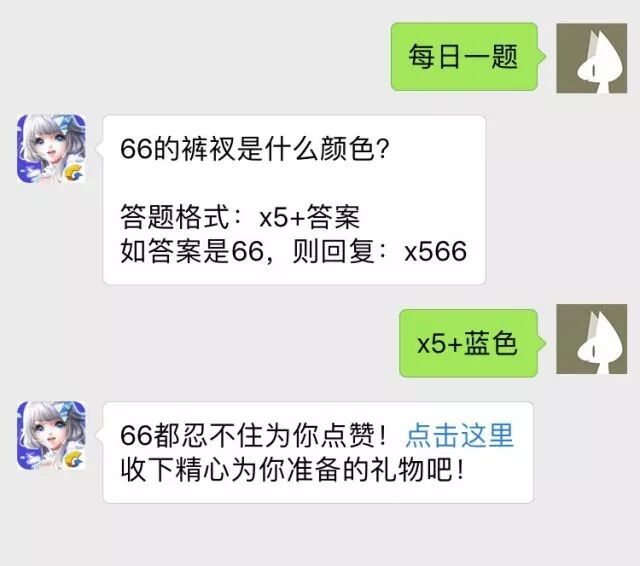 小主人们,五一小长假就在明天!66决定要在家里做一条咸鱼,来个尼古拉斯...葛悠躺! 那你们呢?如果嫌假期在家里蹲太无聊,快来和66做做题吧!不仅 福利多多 ,还有机会获得 光效时装 ~不心动算66输! 每日一题 这次的活动可是 长期福利 !动动脑筋 天天抽奖 ,展现你们高智商 的 时候到 啦! 活动奖励 活动奖励可是很丰厚的!答题有机会获得 时装碎片 换光效时装 哦, 是不是超值~ << 滑动查看更多时装 >> 当然这还没完! 金币、高级魔法种子、点券和染色剂礼盒 等等奖励一样也不会少~ 活动规则 看完了奖励,迫不及待想参加了?那66告诉你们该怎么玩~ 先在公众号菜单栏处绑定账号,然后在菜单栏点击 【舞者福利】-【每日一题】 就可以答题啦! 你们也可以选择在菜单栏发送: 每日一题 进行答题哦! 答对66给出的题目 ,就有 奖励送给你 !答错也没关系,可以一直答到正确为止~ 抽取奖励 答对的小主人会进入抽奖页面,你们戳一戳66,会有意想不到的事情发生! 嘿嘿,奖品都藏在66的小书包里, 抖抖小书包 ,奖励就掉出来啦! 你们 每天都可以 抽 一次奖 哦~至于能在66书包里抖出什么奖励,就全看脸咯! 无聊的生活总是千篇一律,有趣的事情才是万里挑一!所以快去 【舞者福利】-【每日一题】 参与答题啦!! 五一小假期,你们都有什么出行计划呢?是逛街看电影?还是旅游?快来 【写留言】 告诉66~ 脑筋急转弯 眼看着66最喜欢的妇联3就要上映了,66突发灵感给你们出个脑筋急转弯,聪明的小主人 快来猜猜这个谜语 吧~ 如果这叫:拿铁